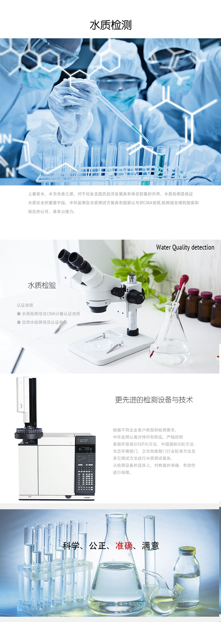 根據(jù)不同企業(yè)客戶類型和檢測需求,中環(huán)監(jiān)測認真對待所有樣品,嚴格按照美國環(huán)保局(USEPA)方法、中國國標(GB)方法、生態(tài)環(huán)境部門、衛(wèi)生防疫部門行業(yè)標準方法及其它測試方法進行水質(zhì)測試服務。如果您有關(guān)于水質(zhì)方面的檢測需求,歡迎與我們聯(lián)系。